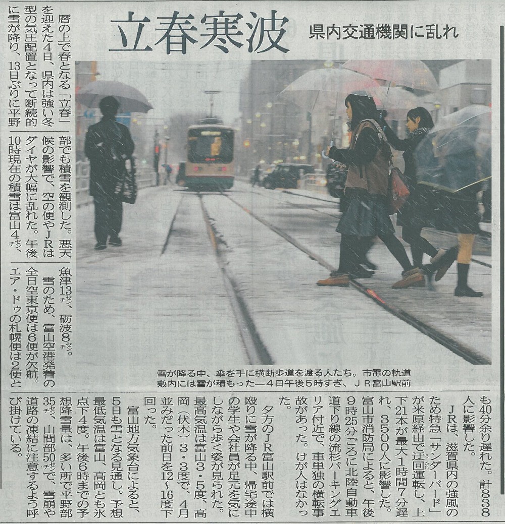 | » 北日本新聞「立春寒波」 | date : 2014/02/05 | |