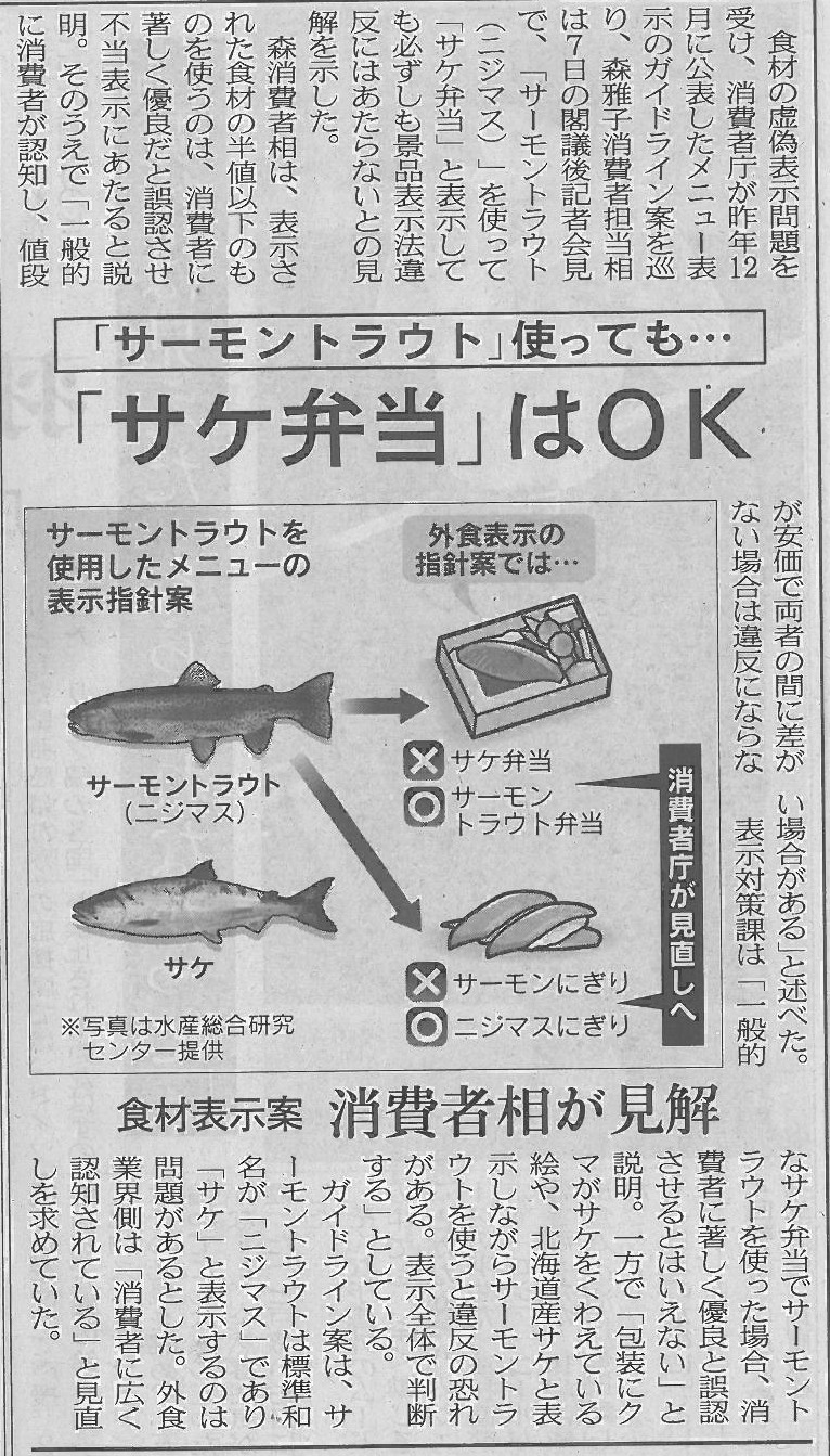 | » 日経新聞「サケ弁当はOK」 | date : 2014/02/09 | |