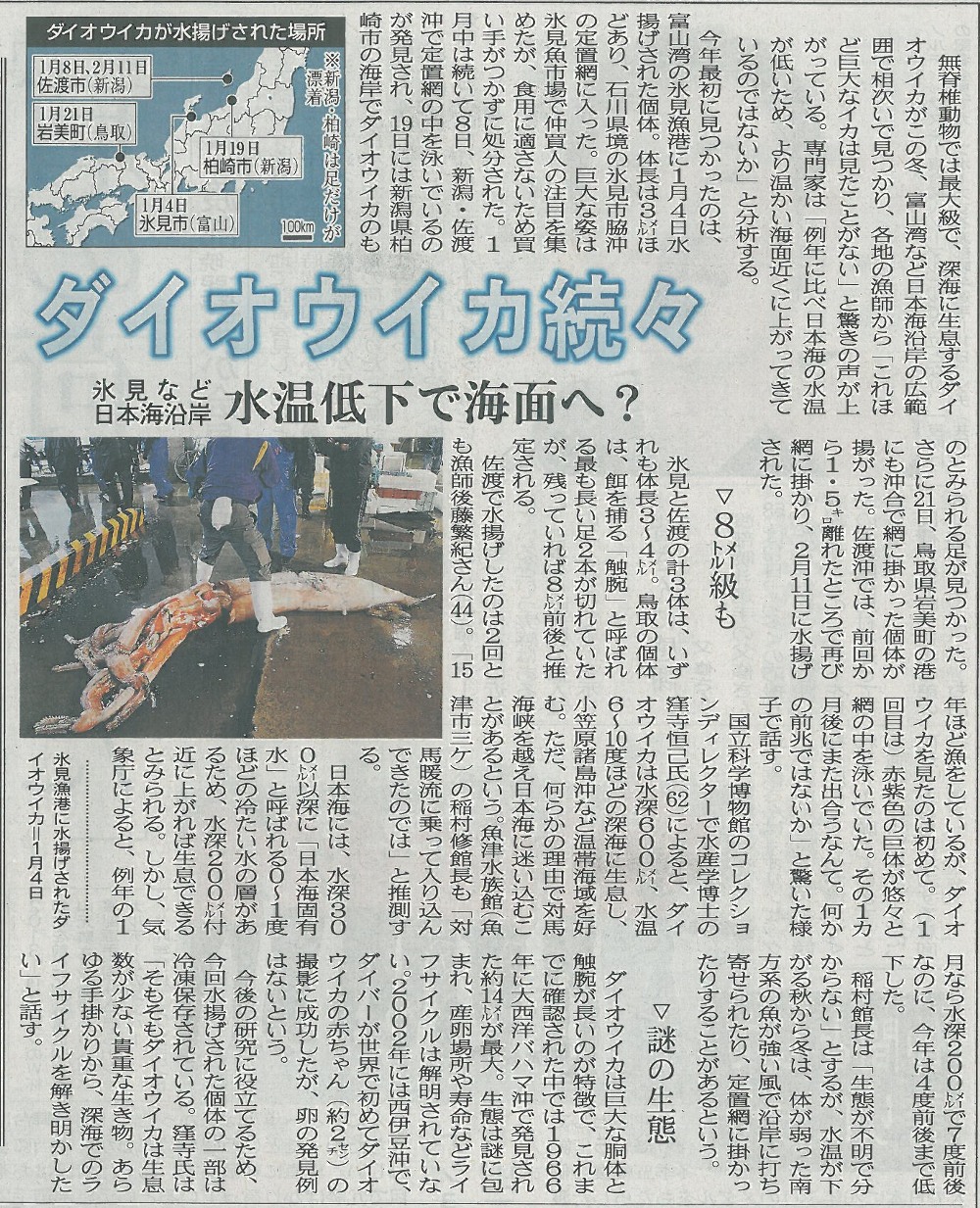 | » 北日本新聞「ダイオウイカ続々」 | date : 2014/02/15 | |