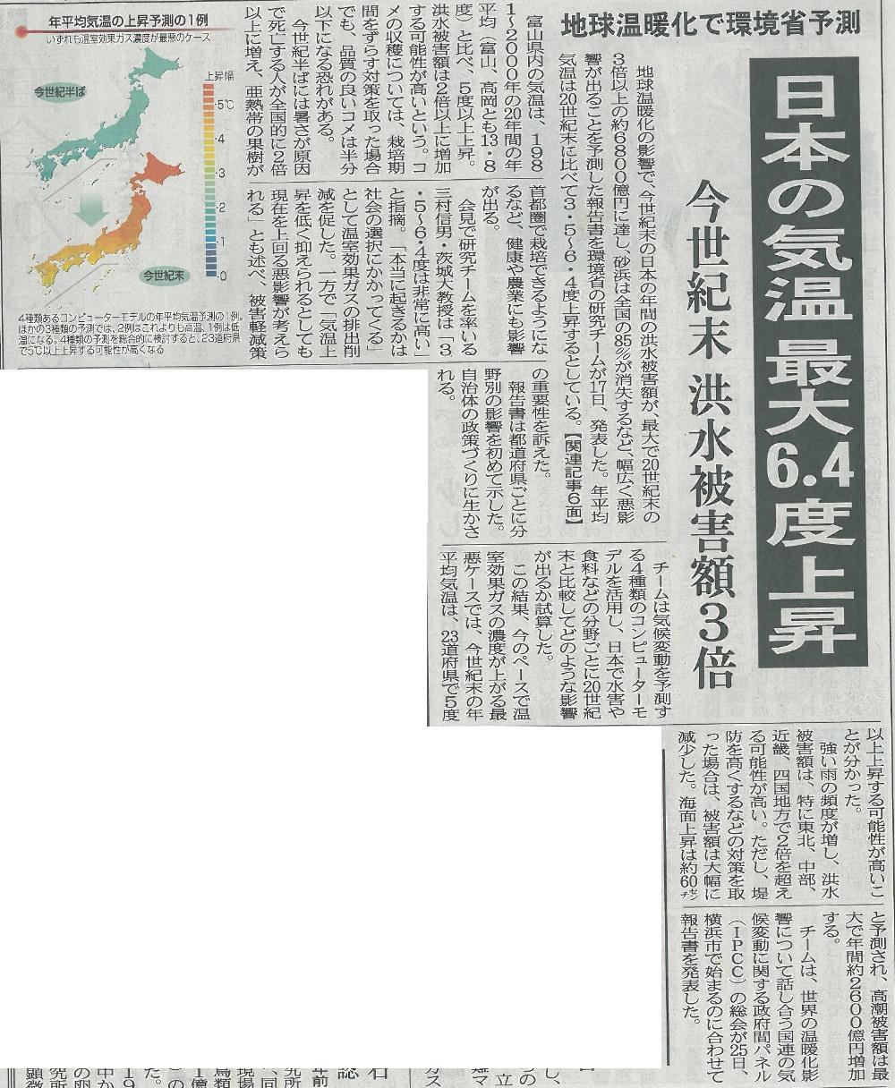 | » 北日本新聞「日本の気温最大6.4度上昇」 | date : 2014/03/18 | |
