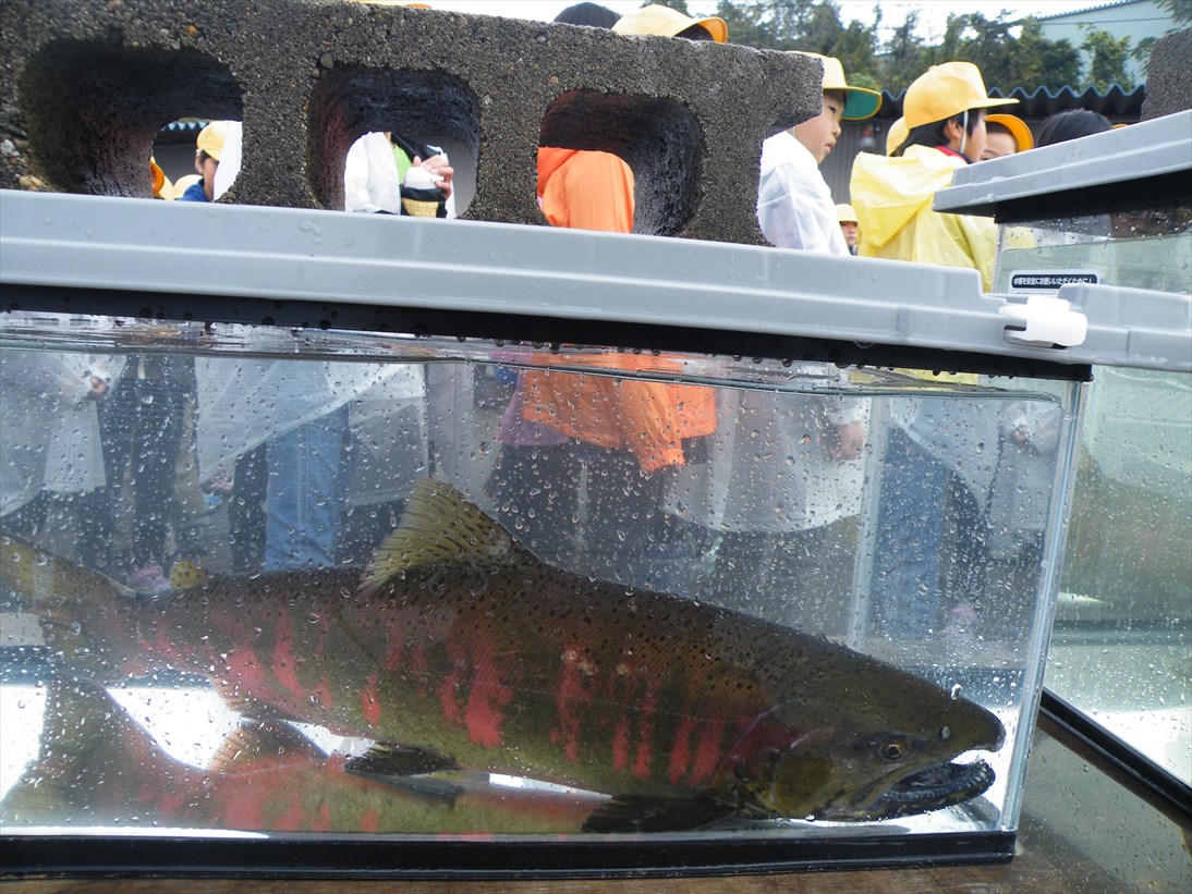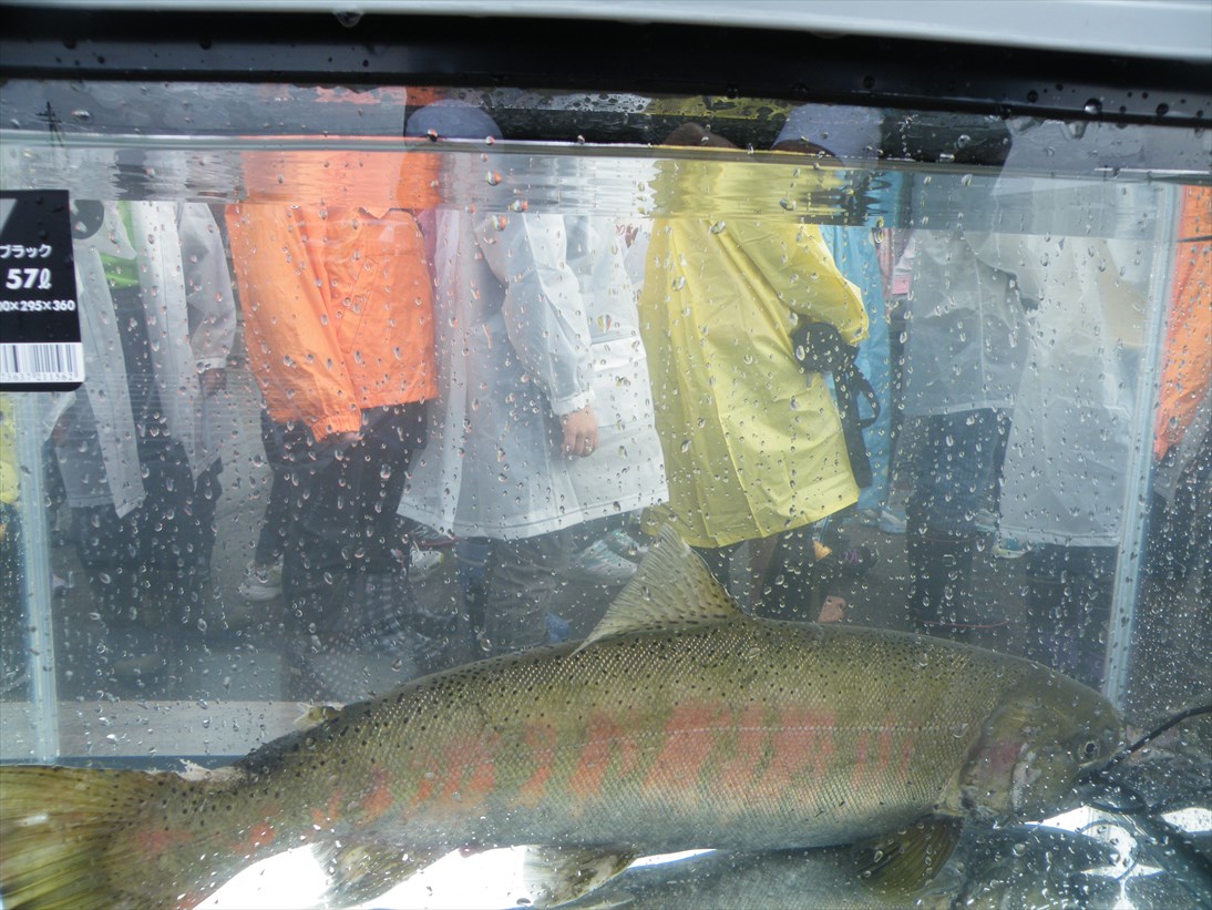 昨日は一日弱い雨が降っていましたが、飛騨地方で5〜25mmの累加雨量があり、若干水量が増えています。 サクラマス自然産卵観察会では、サクラマスの自然産卵が見られなくて渓流の散策になりましたが、サケ・マス増殖場ではサクラマスのメス・オス親魚を水槽に入れて子供たちに見てもらいました。 少し優しい顔のメスと婚姻色の強い厳つい鼻曲りのオス この時期にしてはカビも生えずにきれいなサクラマスで、婚姻色の付いた生きたサクラマスを見ることはまずないでしょうから、みんな熱心に見ていました。 朝8時の大沢野大橋の水量は15.3t、水位は1.30m、萩浦橋の昨日の最高水温は12.1℃、今朝8時の水温は11.7℃、濁度7度、昨日の最高気温15.0℃、今朝8時の気温は12.0℃ |