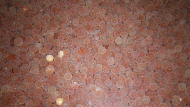 今朝は雨降りですが、暖かい朝になっています。 増殖場から届いたサクラマス卵の写真 ![]() 卵からふ化寸前、目玉がしっかり見えて卵膜もかなり柔らかくなっています。というか真ん中あたりにふ化しているのが見えます。 ふ化すると卵のうの栄養分を吸収して成長し、1ヶ月くらいでふ上して泳ぎだし、自分で餌を食べられるようになります。それまでは、真っ暗な所で安静にしておきます。 朝8時の大沢野大橋の水量は28.7t、水位は1.44m、萩浦橋の昨日の最高水温は6.6℃、今朝8時の水温は6.3℃、濁度7度、昨日の最高気温6.2℃、今朝8時の気温は10.0℃ |