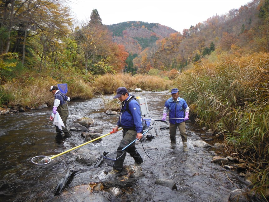 今日は快晴ですが、冷え込んでいます。![]() 水量は増水前の状態に戻ってきました。 昨日は宮川支流の小鳥川へ、ブラウントラウトの駆除作業のお手伝いに、水研の田子さんと一緒に行ってきました。 昨年の場所は上流部だったので大きな石がゴロゴロで非常に歩き難かったのですが、今年は最下流部で多少楽なものの、水量が多いのと石が滑って何度も転びそうになりました。アユの時期ならこんなことにはならないのでしょうが。 ![]() 成果は小さい幼魚が1尾だけ。 ![]() 下流エリアは昨年も少なかったそうですが、折角行ったのでもう少し捕れてくれれば良かったのにと不謹慎なことを思ってしまいました。 他のイワナやヤマメ、ウグイの数は非常に多くて、資源量の多い河川でした。 足元の悪い中を重い電気ショッカーを担いで歩き回る宮川下流漁協の参事のタフさには感服しました。 これから東京の日帰り出張に行ってきます。 朝8時の大沢野大橋の水量は31.4t、水位は1.29m、萩浦橋の昨日の最高水温は13.4℃、今朝8時の水温は11.7℃、濁度8度、昨日の最高気温15.1℃、今朝8時の気温は9.7℃ |