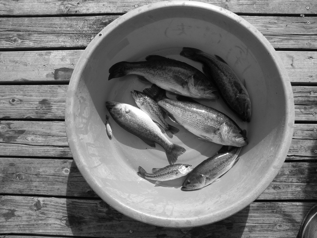 昨日は快晴と書きましたが、朝だけで雲の多い一日でした。 今朝も曇り空、午後から雨の予報になっています。 昨日のブラックバス駆除は暑なし寒なしの中で程々に捕れました。先日のブラウン駆除のようにあまり捕れないと寂しいものです。 写真を撮ってきたのですが、何処を触ったのか白黒になっていました。こんな機能があることも知らないのにどうしてなったのか分かりませんが、いつも何か表示が出るとOK、OKにするので多分そのせいでしょう。 ![]() 水研の「あゆかぜ」で柳の倒木回りを電気ショッカーで探ります。この柳を後で撤去しました。 漁協は刺し網を引いて、水面を叩いて追い出しました。 ![]() これが刺し網で捕った分8尾 ![]() これが電気ショッカーで捕ったバス12尾です。 どうしても刺し網は大物、電気ショッカーは小さなものが多くなります。 セピア色で逆に新鮮に見えるかも。 朝8時の大沢野大橋の水量は79.1t、水位は1.56m、萩浦橋の昨日の最高水温は13.5℃、今朝8時の水温は12.1℃、濁度6度、昨日の最高気温17.5℃、今朝8時の気温は18.3℃ |