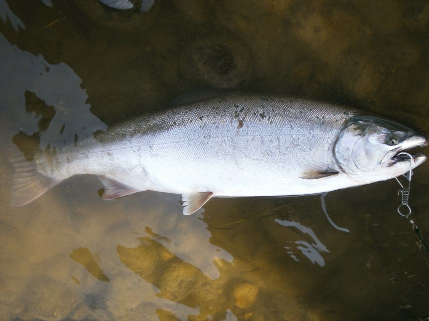 今日も快晴、9m/s以上の強い南風が吹いて最高気温も28℃を予想しています。![]() サクラマス漁もすでに今シーズンの4分の3が終わり、残り2週間になりました。 監視員から昨日の釣果写真が届いています。 ご本人のOKが出たということなので、特大サクラマスと一緒に。 ![]() 三重県のKさん。 ![]() サイズは70.5cm、4.8kgと今シーズン最高クラスでした。 朝8時の大沢野大橋の水量は57.1t、水位は1.45m、神通大橋の水量は107.3t、水位は1.13m、萩浦橋の昨日の最高水温は18.5℃、今朝8時の水温は15.0℃、濁度9度、昨日の最高気温25.6℃、今朝8時の気温は22.9℃ |