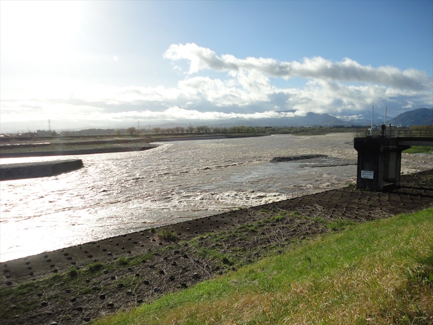 昨日は午後から天気も回復しましたが、今朝は雨、風も強く、日中は雨が降りやすい天気が続くようです。 昨日の大沢野大橋の最高が1,027tで昨年9月22日の2,500t以来の増水でした。 今朝には昨日の増水前くらいまで減水していますが、週末前までは水量が多い状態が続きそうです。 ![]() ![]() 昨日、成子大橋上流の水はね工が増水で飛ばされたとお伝えしましたが、地元の役員から写真が届きました。 ![]() 減水した時に、どれくらいの割合で西、東に分流するか分かりませんが、飛ばされた土砂は下流の何処かで溜まっているはずです。 8時の大沢野大橋の水量は385.1t、水位は2.44m、神通大橋の水量は569.3t、水位は2.59m、萩浦橋の昨日の最高水温は9.7℃、今朝8時の水温は9.2℃、濁度33度、昨日の最高気温18.7℃、今朝8時の気温は12.3℃ |