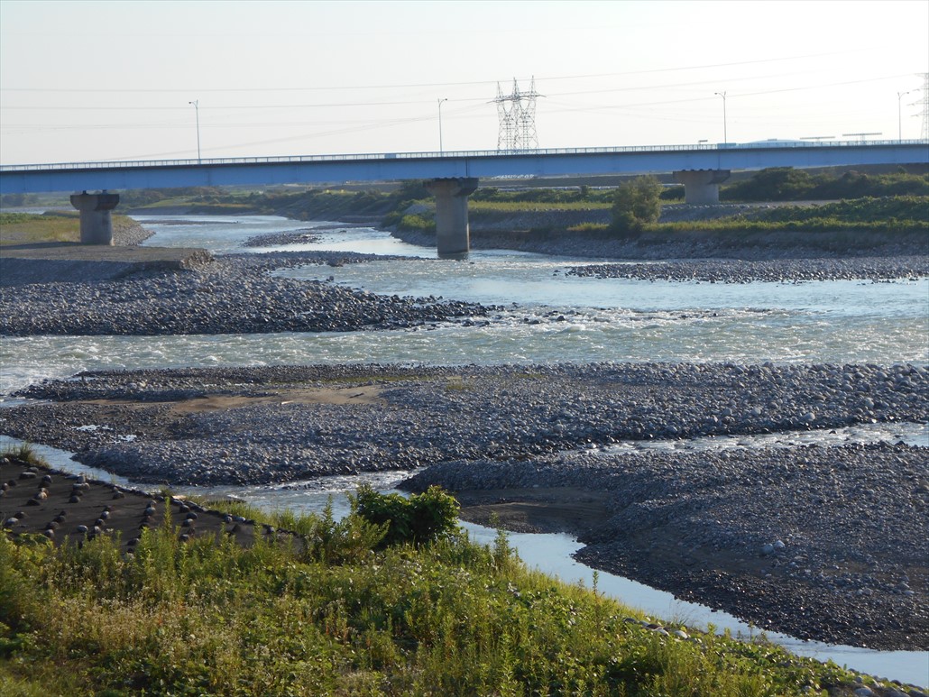 今朝は快晴、今日も最高気温は31℃を予想しています。 昨日より若干水量は増えていますが平水、濁りもだいぶ薄くなってきました。 ![]() 昨日は良い条件ではありませんでしたが、友釣25人、毛針釣74人の人が出ていて、友釣では土曜日は7〜25尾、日曜日は午前中で10尾という人もいたそうです。 成子大橋上流左岸から下流を撮った昨日の写真です。 ![]() 昨年秋の河川工事後、左岸側と河道変更した中央の流れが6:4くらいの割合で分流していましたが、今回の増水で左岸側の水量が多くなり、元の流れに戻りそうです。 8時の大沢野大橋の水量は79.1t、水位は1.56m、萩浦橋の昨日の最高水温は21.8℃、今朝8時の水温は19.2℃、濁度13度、昨日の最高気温31.5℃、今朝8時の気温は28.3℃ |