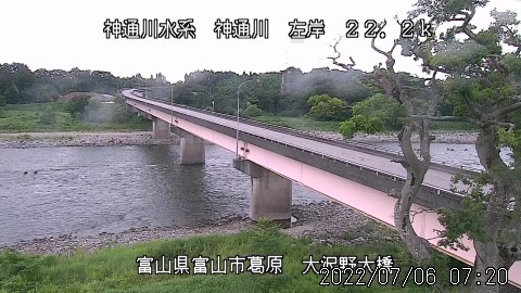 昨日は予報された雨が降らず、予定通りの水質調査を行うことができました。 今日も天気予報では曇りになっているので、自然河川の調査もできるかもしれません。最高気温は30℃の予想。 水位は平水に戻り、濁りもかなり薄くなっています。週間天気予報では土曜日に小さな傘マークがあるだけなので、週末の釣りは大丈夫だと思います。 濁り具合の確認は「河川ライブ情報の神3ダムライブ映像」をご確認ください。 ![]() ![]() 8時の神三ダム水量は78t、以前の大沢野大橋水位換算で1.55mくらい、現在の大沢野大橋観測所水位データは1.14m、萩浦橋の水温データは欠測、昨日の最高気温は32.6℃、今朝8時の気温は26.1℃ 今日の水況 平水、濁りほぼなし |