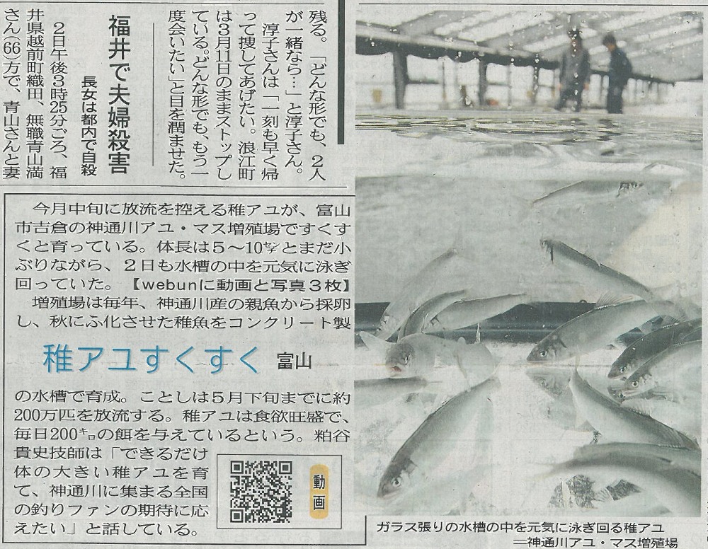 | » 北日本新聞「稚アユすくすく」 | date : 2011/04/03 | |