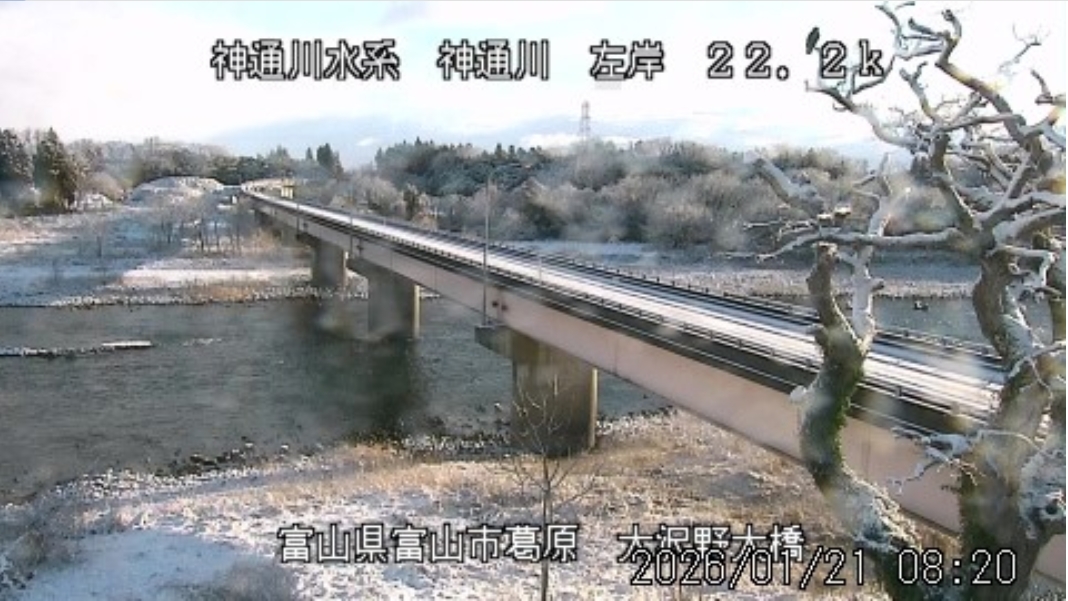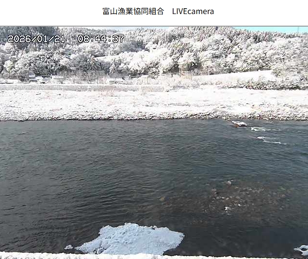 今朝は日差しも出て雪が少し積もった程度ですが、冷え込みが強く朝8時の気温が―1.5℃。 予報では、今日は「雪時々止む」。今夜から明日一杯が寒波のピークになりそうです。 ![]() 神3ダム下流左岸からの組合カメラから。ライブで見ることができます。 ![]() ![]() 朝8時の神3ダム水量45t、以前の大沢野大橋水位換算で1.39mくらい、現在の大沢野大橋観測所水位データは0.88m、神通大橋観測所水位データ1.20m、昨日の最高気温は7.7℃、今朝8時の気温−1.5℃ 今日の水況 平水、濁りなし |