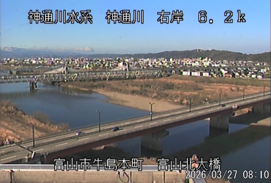 今朝は快晴、予報も一日「晴れ」になっています。最高気温は15℃の予想。 市役所あたりの松川べりの桜は、ポツポツ咲き始めてきました。城址公園では花見客や全国チンドンコンクールも併せて露店がすでに御商売を始めていました。 ![]() 神3ダム左岸の組合ライブ映像です。河川ライブ情報から動画で見ることができます。 3月中は融雪出水もなく、安定した水量でした。 ![]() ![]() 8時の神3ダム水量35t、以前の大沢野大橋水位換算で1.32mくらい、現在の大沢野大橋観測所水位データは0.82m、神通大橋観測所水位データ1.14m、昨日の最高気温は13.5℃、今朝8時の気温9.9℃ 今日の水況 平水、濁りなし |