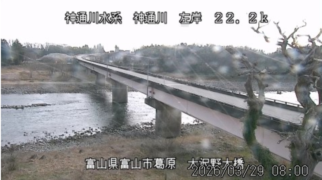 今朝も暖かい良い天気になりそうです。予報は「晴れ時々曇り」、最高気温は17℃の予想。 昨日の最高気温は19.6℃ともう少しで20℃になりそうでした。 この陽気で組合事務所近くの松川の桜もチラホラ咲き始めてきました。 ![]() ![]() ![]() 8時の神3ダム水量30t、以前の大沢野大橋水位換算で1.29mくらい、現在の大沢野大橋観測所水位データは0.83m、神通大橋観測所水位データ1.11m、昨日の最高気温は19.6℃、今朝8時の気温11.4℃ 今日の水況 平水、濁りなし |