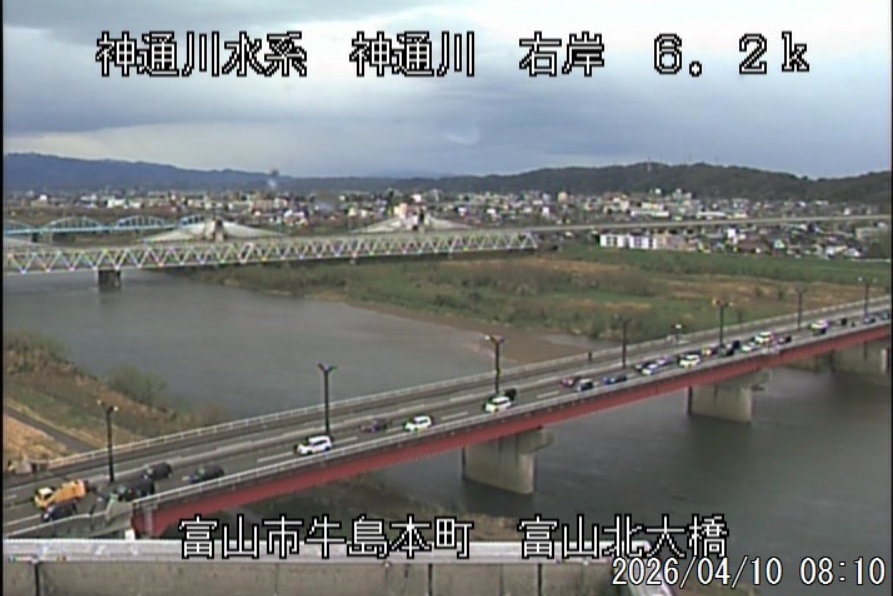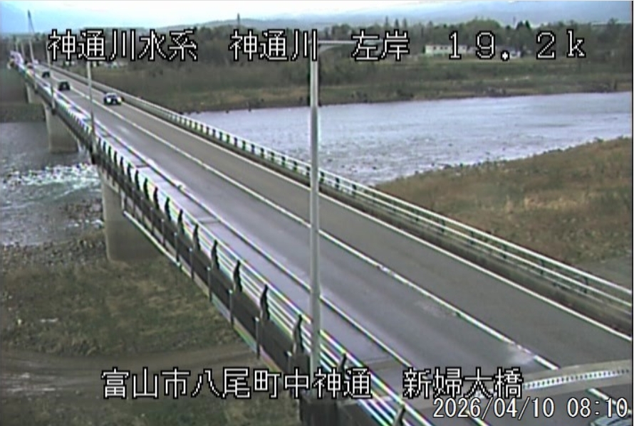 昨日の初放流は、強めの南風が吹いていましたが、河川水温もこの時期としては高めで、無事終了しました。 小学校の入学式とバッティングしたので、報道関係は少なめでした。 昨日の夜から強風と雨になり、富山市の24h累加雨量が12mm、飛騨地方では30mm超えの雨になり、宮川、高原川とも増水して、神通川も昨日より90tの増水です。今日の天気は「雨時々曇り」、最高気温は22℃の予想になっています。 ![]() ![]() ![]() 水位が昨日より28cm高で厳しい状況です。昨日も1本釣れたようです。 8時の神3ダム水量151t、以前の大沢野大橋水位換算で1.84mくらい、現在の大沢野大橋観測所水位データは1.28m、神通大橋観測所水位データ1.56m、昨日の最高気温は23.1℃、今朝8時の気温18.3℃ 今日の水況 増水、少し濁りあり |