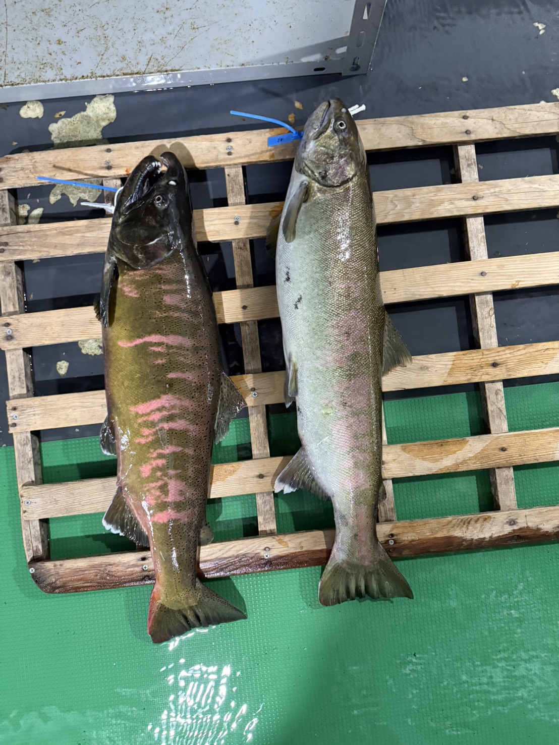 今朝は快晴、一日晴れの予報になっています。最高気温は20℃の予想。 今日は増殖場で停電騒ぎがあり、発電機の燃料も切れて、ギリギリのところで回復しました。アユを目一杯抱えているような時期だったら被害が出るような事態でした。 今年のサケ漁、神通川ではオスは少し捕まっているようですが、メスがまだ来ていないようです。今年はサケの海での捕獲情報もよくありません。 ![]() 過去10年平均の60分の1、昨年の6分の1程度。もう1週間ありますが、大変厳しい状況です。 ![]() ![]() 朝8時の神3ダム水量30t、以前の大沢野大橋水位換算で1.29mくらい、現在の大沢野大橋観測所水位データは0.76m、神通大橋観測所水位データ1.15m、昨日の最高気温は16.9℃、今朝8時の気温は14.8℃ 今日の水況 平水、濁りなし |