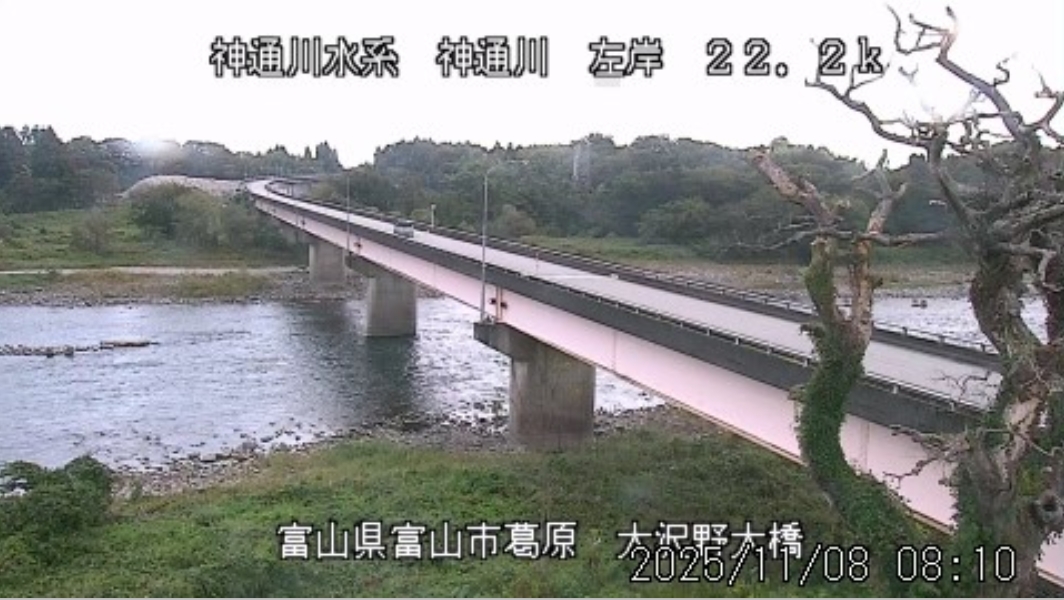 今朝は日差しも出て良い天気になりそうですが、予報は「晴れ後曇り」。最高気温は16℃の予想。 明日の午後から雨の予報になっています。 今朝8時半の快晴の焼岳ライブ。長野県側から見た焼岳、山頂は雪、下の方はまだ紅葉。良い景色です。 河川ライブ情報の高原川情報から見られます。 ![]() ![]() ![]() 朝8時の神3ダム水量41t、以前の大沢野大橋水位換算で1.36mくらい、現在の大沢野大橋観測所水位データは0.86m、神通大橋観測所水位データ1.16m、昨日の最高気温は18.6℃、今朝8時の気温は9.6℃ 今日の水況 平水、濁りなし |