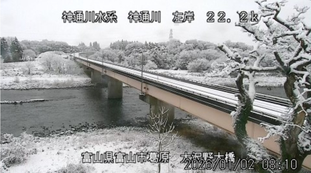 新年明けましておめでとうございます。 本年もよろしくお願いします。 今日は雪で、8時の富山の積雪は4cm、氷見は14cmになっています。今のところ、飛騨地方も大雪にはなっていません。最高気温は3℃の予想。 ![]() ![]() ![]() 朝8時の神3ダム水量31t、以前の大沢野大橋水位換算で1.29mくらい、現在の大沢野大橋観測所水位データは0.80m、神通大橋観測所水位データ1.21m、昨日の最高気温は6.2℃、今朝8時の気温0.6℃ 今日の水況 平水、濁りなし |