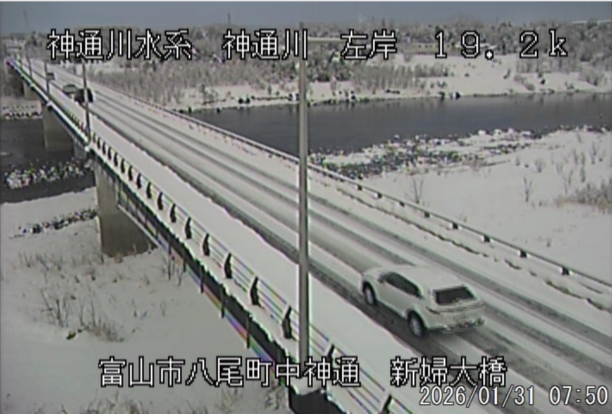 朝まで雪が降っていましたが、今は晴れ間も出てきました。富山の積雪は29cm、飛騨河合では47cmになっていて、昨日は今シーズン初めて最高気温がマイナスの真冬日と寒い一日でした。 今日の予報は「雪」、最高気温は4℃の予想になっています。 ![]() ![]() ![]() 朝8時の神3ダム水量45t、以前の大沢野大橋水位換算で1.39mくらい、現在の大沢野大橋観測所水位データは0.90m、神通大橋観測所水位データ1.19m、昨日の最高気温は―0.4℃、今朝8時の気温−0.8℃ 今日の水況 平水、濁りなし |