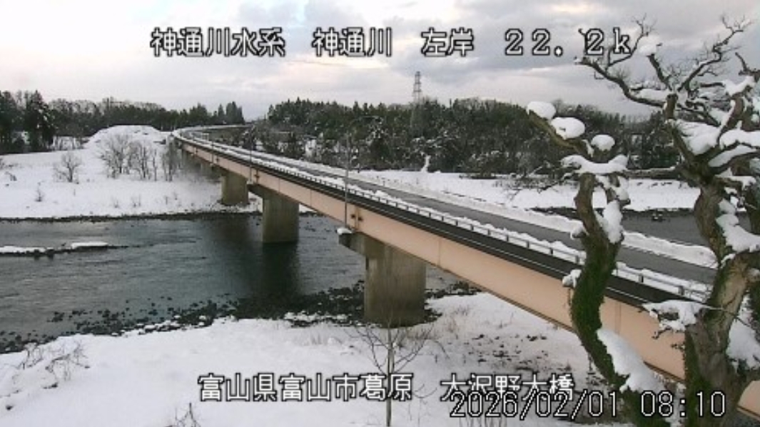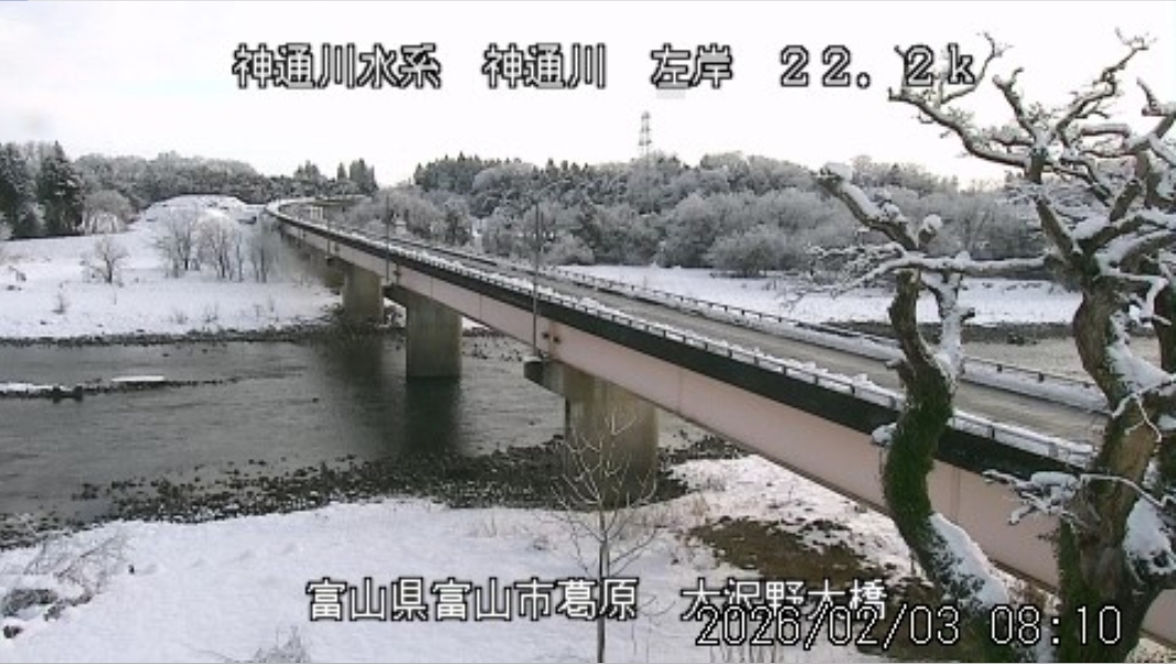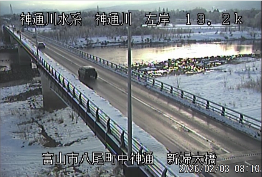 今朝は曇り空、日差しも出てきました。今日の予報は「曇り」、最高気温は3℃の予想になっています。 富山の積雪は42cm。強い寒波は収まったようですが、週間天気予報では、毎日小さな雪マークと最低気温はマイナスの日が続いています。 ![]() 神3ダム下流の組合ライブ映像ですが、長いツララができていました。最近は軒下のツララを見ることが無くなりました。 ![]() ![]() 朝8時の神3ダム水量35t、以前の大沢野大橋水位換算で1.31mくらい、現在の大沢野大橋観測所水位データは0.82m、神通大橋観測所水位データ1.09m、昨日の最高気温は0.6℃、今朝8時の気温−0.3℃ 今日の水況 平水、濁りなし |