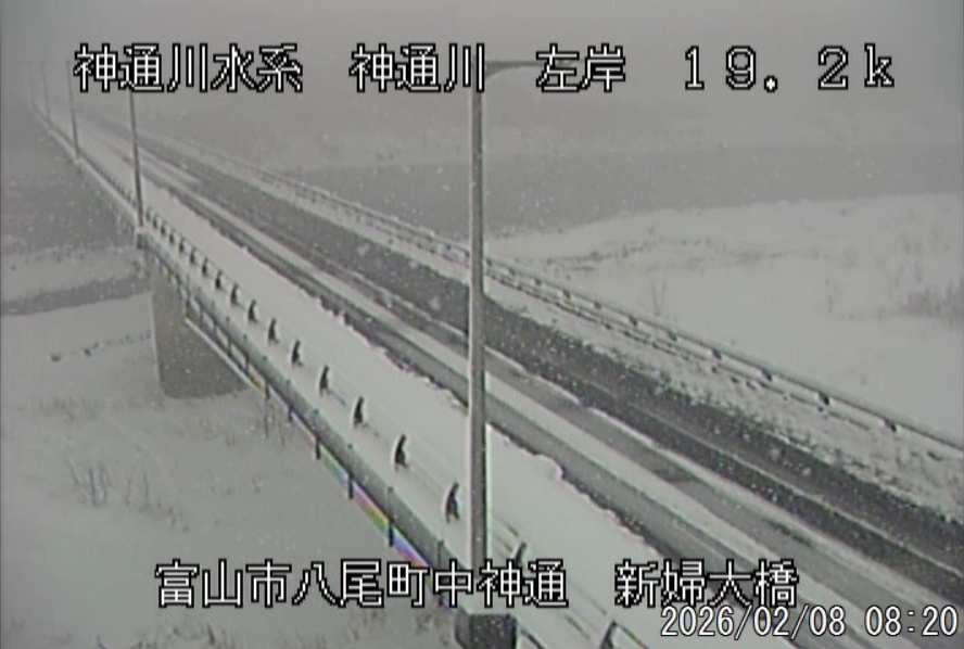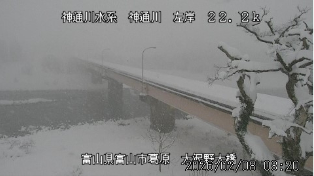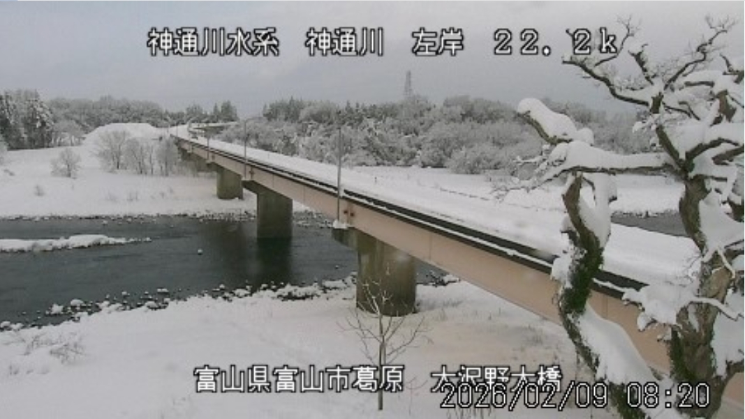 今朝も雪になっています。予報では「雪時々止む」、最高気温は5℃の予報。 積雪は富山で40cm。日中に解けた分、夜に新たに積もっています。 ![]() ![]() ![]() 朝8時の神3ダム水量25t、以前の大沢野大橋水位換算で1.25mくらい、現在の大沢野大橋観測所水位データは0.75m、神通大橋観測所水位データ1.01m、昨日の最高気温は3.1℃、今朝8時の気温0.8℃ 今日の水況 平水、濁りなし |