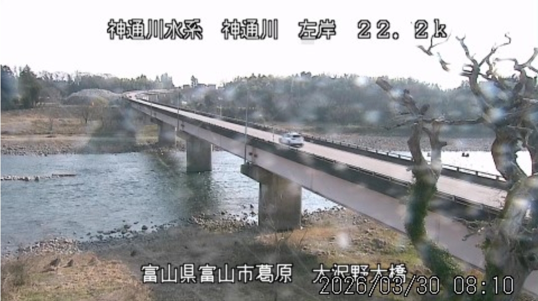 今朝は良い天気で8時の気温が14.3℃と暖かくなっています。予報は「晴れ時々曇り」、最高気温は23℃まで上がる予想です。 昨日、富山気象台のサクラ開花宣言がありましたが、数日暖かい日が続いて松川べりはすでに5分咲きくらいに見えます。 共有漁場(高原川漁協、宮川下流漁協、富山漁協)が管理する加賀沢の鉄橋工事について、3月28日の北日本新聞に「高山線 GW間に合わず」の記事が載っていました。 ![]() ![]() ![]() 8時の神3ダム水量52t、以前の大沢野大橋水位換算で1.44mくらい、現在の大沢野大橋観測所水位データは0.90m、神通大橋観測所水位データ1.19m、昨日の最高気温は16.2℃、今朝8時の気温14.3℃ 今日の水況 平水、濁りなし |