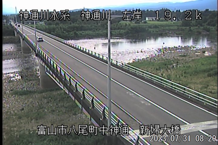 昨日は富山気象台で36.4℃の猛暑日になりました。今日も最高気温は35℃の予想なので、熱中症には注意してください。 昨晩、飛騨地方で5〜15mmの夕立があったようで、昨日より10cmほど水位が上がっています。 今朝も水難事故が起きたと連絡が入ってきました。消防とは捜索に関する協定を結んでいるので、すでに組合員が出動しています。 くれぐれも安全には気を付けてください。 ![]() ![]() ![]() 8時の神3ダム水量は58t、以前の大沢野大橋水位換算で1.46mくらい、現在の大沢野大橋観測所水位データは1.06m、神通大橋観測所水位データ1.12m、昨日の最高気温は36.4℃、今朝8時の気温は31.0℃ 今日の水況 平水、濁りなし |