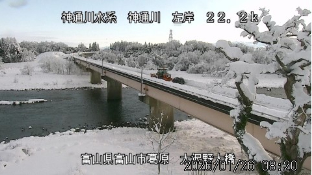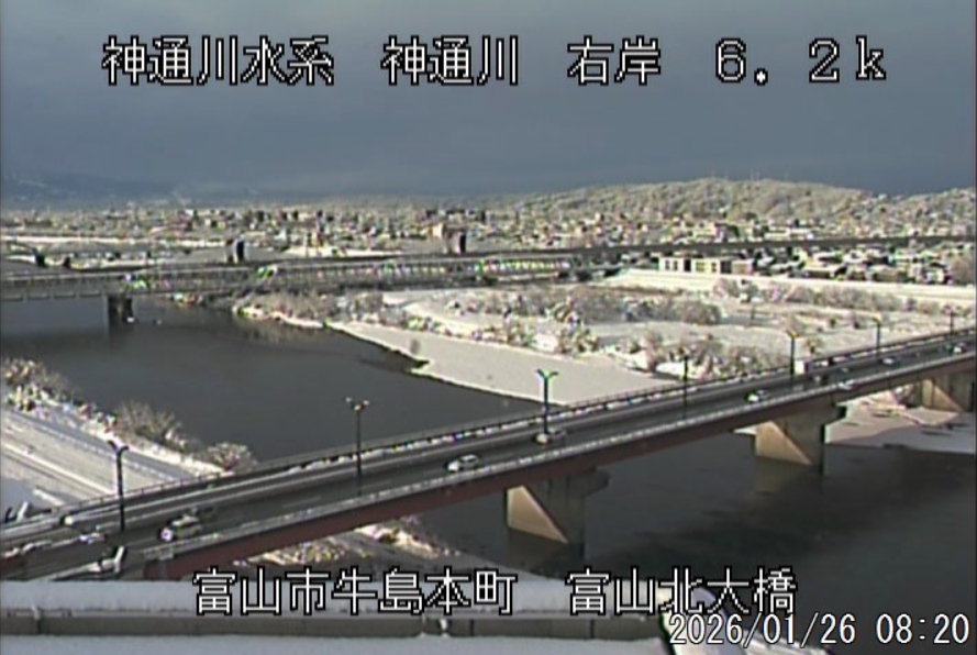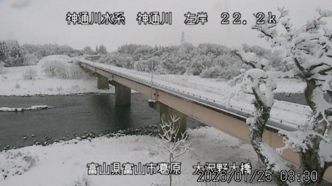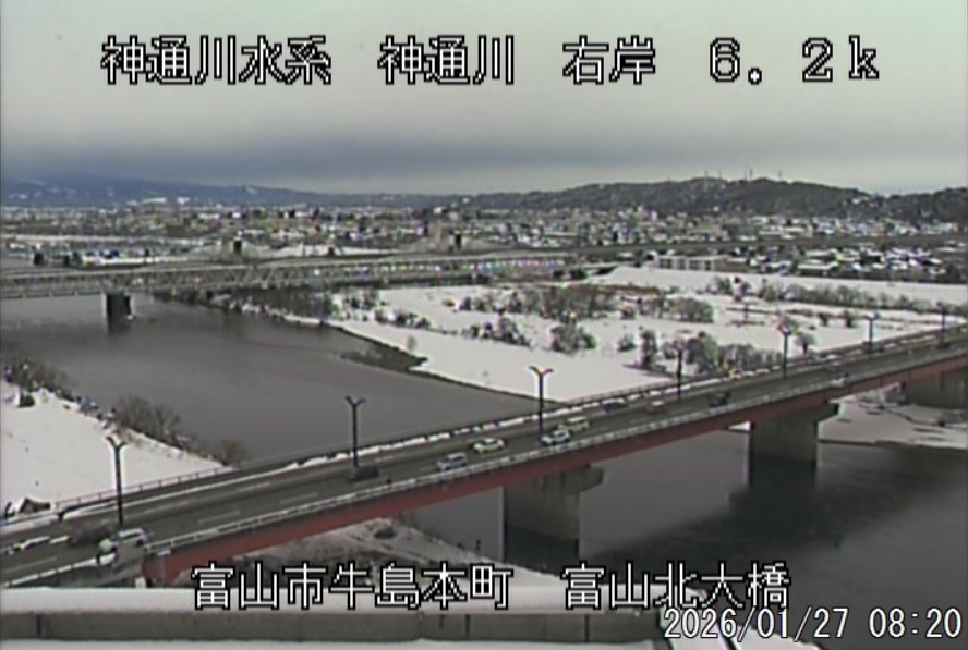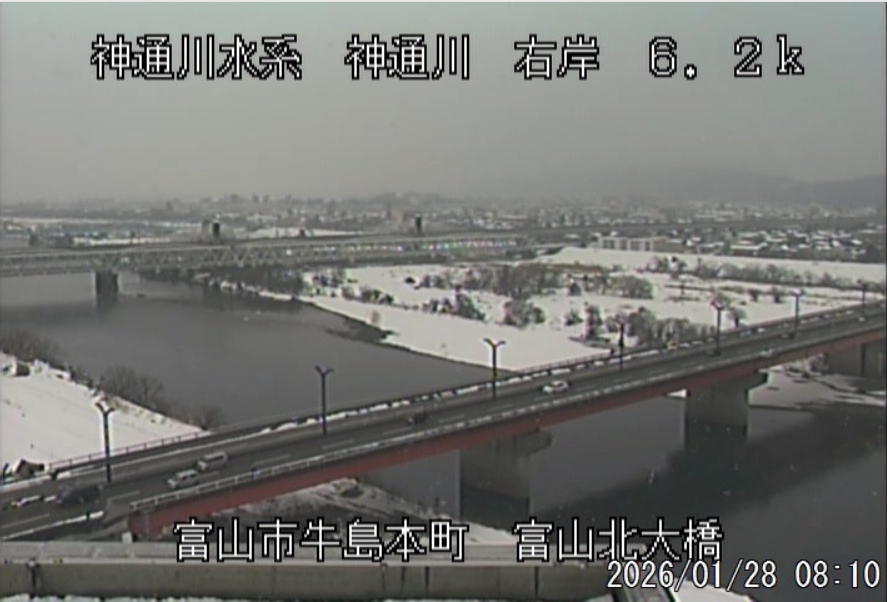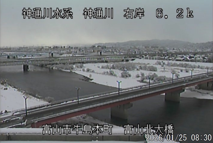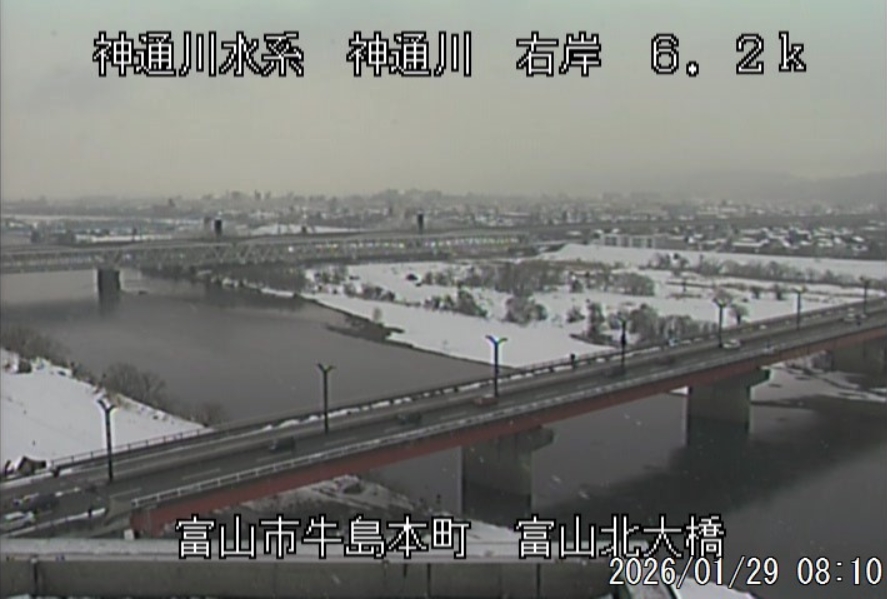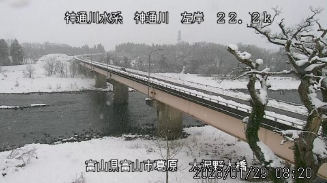 今朝は日差しも出て雪が少し積もった程度ですが、冷え込みが強く朝8時の気温が―1.5℃。 予報では、今日は「雪時々止む」。今夜から明日一杯が寒波のピークになりそうです。 ![]() 神3ダム下流左岸からの組合カメラから。ライブで見ることができます。 ![]() ![]() 朝8時の神3ダム水量45t、以前の大沢野大橋水位換算で1.39mくらい、現在の大沢野大橋観測所水位データは0.88m、神通大橋観測所水位データ1.20m、昨日の最高気温は7.7℃、今朝8時の気温−1.5℃ 今日の水況 平水、濁りなし |