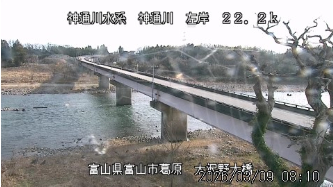早朝から雨が降り出し、本降りになっています。今日の予報は「雨」、最高気温は9℃の予想になっています。 十日ほど暖かい日が続き春のような陽気でしたが、これから数日は山沿いで雪が降る天気予報です。 ![]() ![]() ![]() 朝8時の神3ダム水量86t、以前の大沢野大橋水位換算で1.60mくらい、現在の大沢野大橋観測所水位データは1.06m、神通大橋観測所水位データ1.45m、昨日の最高気温は11.1℃、今朝8時の気温6.7℃ 今日の水況 平水、濁りなし |