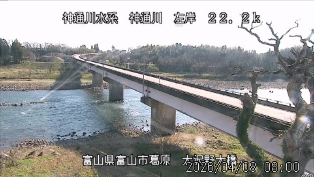 今朝は良い天気で8時の気温が14.3℃と暖かくなっています。予報は「晴れ時々曇り」、最高気温は23℃まで上がる予想です。 昨日、富山気象台のサクラ開花宣言がありましたが、数日暖かい日が続いて松川べりはすでに5分咲きくらいに見えます。 共有漁場(高原川漁協、宮川下流漁協、富山漁協)が管理する加賀沢の鉄橋工事について、3月28日の北日本新聞に「高山線 GW間に合わず」の記事が載っていました。 ![]() ![]() ![]() 8時の神3ダム水量52t、以前の大沢野大橋水位換算で1.44mくらい、現在の大沢野大橋観測所水位データは0.90m、神通大橋観測所水位データ1.19m、昨日の最高気温は16.2℃、今朝8時の気温14.3℃ 今日の水況 平水、濁りなし |