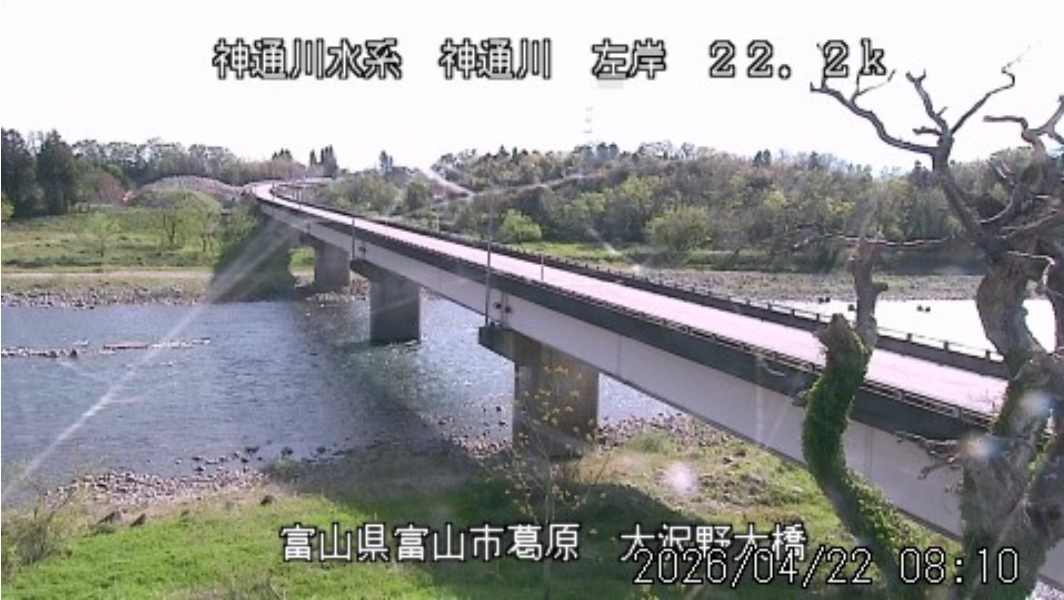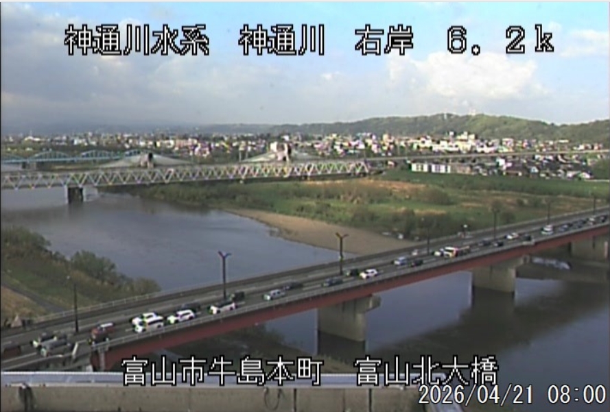 今日も良い天気になっています。予報は「晴れ時々曇り」、最高気温は17℃と昨日に比べると6℃も低くなっています。 水量も順調に減ってきて、富山北大橋の水位は4月1日以降で一番低くなりました。 明日は朝一で事務所を出発する用事があるので書き込みができません。各自で水位をご確認ください。 ![]() ![]() ![]() 8時の神3ダム水量90t、以前の大沢野大橋水位換算で1.61mくらい、現在の大沢野大橋観測所水位データは1.15m、神通大橋観測所水位データ1.48m、昨日の最高気温は22.7℃、今朝8時の気温12.2℃ 今日の水況 平水、濁りなし |